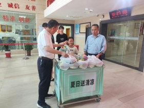 深感干部职工们的辛勤付出和无私奉献,院党委特此发起了“防暑降温,服务一线”的关怀行动。为了响应这一号召,院工会与院团委迅速行动,共同策划并开展了我院精神文明建设中的一项特别活动——“夏日送清凉”。这项活动旨在向在高温环境下坚守岗位的干部职工们送去一份夏日的慰藉和关怀。